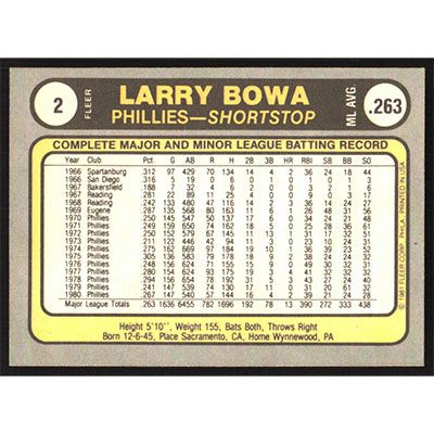 This is a 1981 Fleer Larry Bowa baseball card. The card is #2 and pictures show condition.