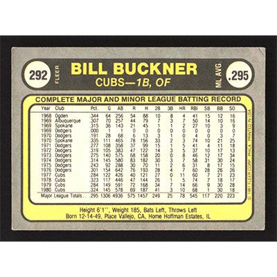 This is a 1981 Fleer Bill Buckner baseball card. The card is #292 and pictures show condition.
