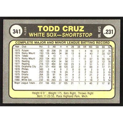 This is a 1981 Fleer Todd Cruz baseball card. The card is #341 and pictures show condition.