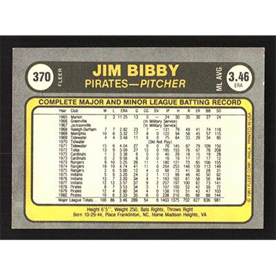 This is a 1981 Fleer Jim Bibby baseball card. The card is #370 and pictures show condition.
