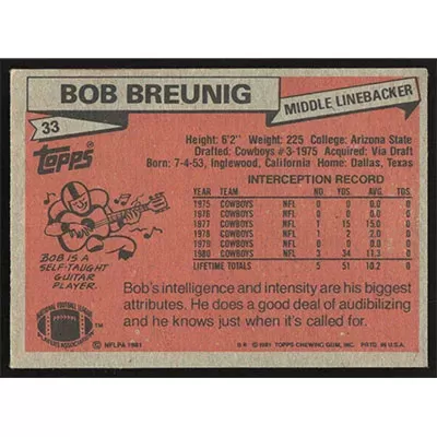 This is a 1981 Topps Bob Breunig football card. The card is #33 and pictures show condition.