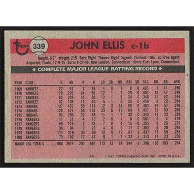 This is a 1981 Topps John Ellis baseball card. The card is #339 and pictures show condition.