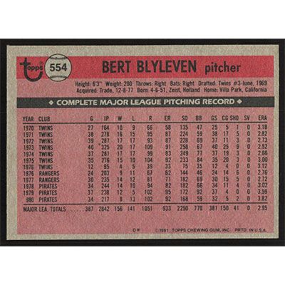 This is a 1981 Topps Bert Blyleven baseball card. The card is #554 and pictures show condition.