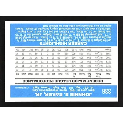 This is a 1982 Donruss Dusty Baker baseball card. The card is #336 and pictures show condition.