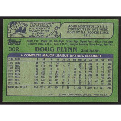 This is a 1982 Topps Doug Flynn baseball card. The card is #302 and pictures show condition.