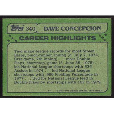 This is a 1982 Topps Dave Concepcion All-Star baseball card. The card is #340 and pictures show condition.