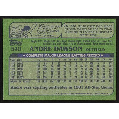 This is a 1982 Topps Andre Dawson baseball card. The card is #341 and pictures show condition.