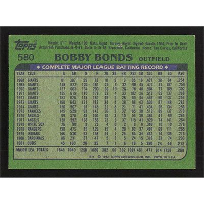 This is a 1982 Topps Bobby Bonds baseball card. The card is #580 and pictures show condition.