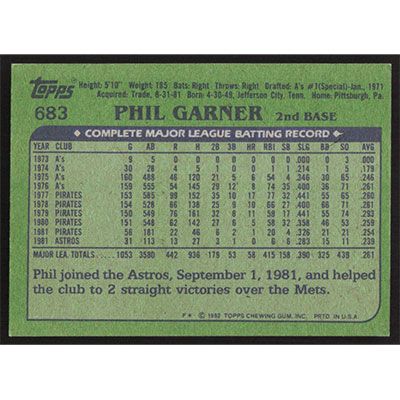 This is a 1982 Topps Phil Garner baseball card. The card is #683 and pictures show condition.