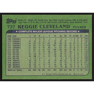 This is a 1982 Topps Reggie Cleveland baseball card. The card is #737 and pictures show condition.