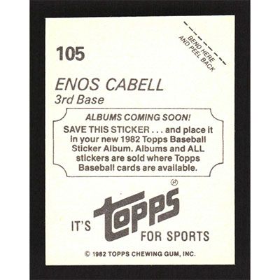 This is a 1982 Topps Stickers Enos Cabell baseball card. The card is #105 and pictures show condition.