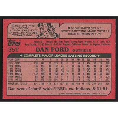 This is a 1982 Topps Traded Dan Ford baseball card. The card is #35T and pictures show condition.