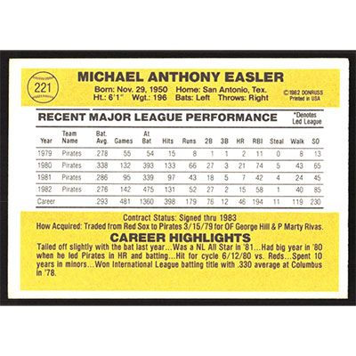 This is a 1983 Donruss Mike Easler baseball card. The card is #221 and pictures show condition.
