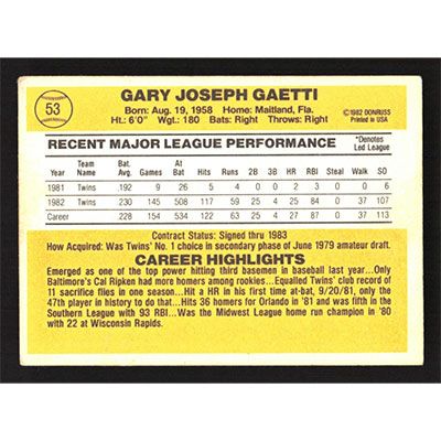 This is a 1983 Donruss Gary Gaetti baseball card. The card is #53 and pictures show condition.