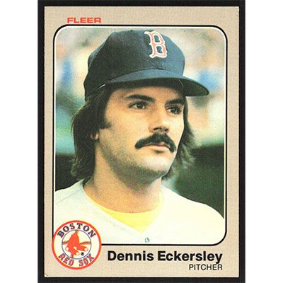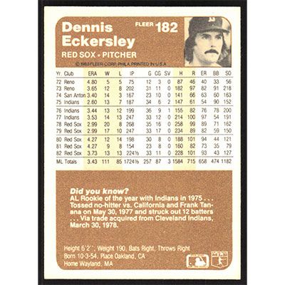 This is a 1983 Fleer Dennis Eckersley baseball card. The card is #182 and pictures show condition.