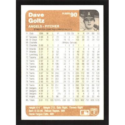 This is a 1983 Fleer Dave Goltz baseball card. The card is #90 and pictures show condition.
