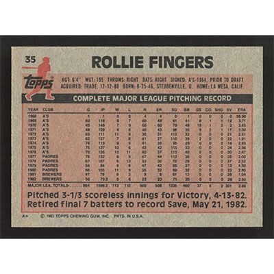 This is a 1983 Topps Rollie Fingers baseball card. The card is #35 and pictures show condition.