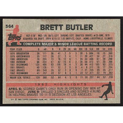 This is a 1983 Topps Brett Butler baseball card. The card is #364 and pictures show condition.