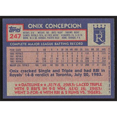 This is a 1984 Topps Onix Concepcion baseball card. The card is #247 and pictures show condition.