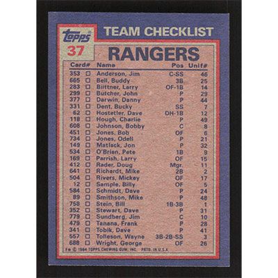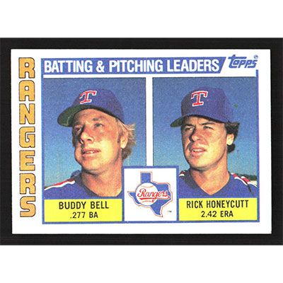 This is a 1984 Topps Buddy Bell and Rick Honeycutt Rangers Batting & Pitching Leaders baseball card. The card is #37 and pictures show condition. Team(s): Texas Rangers