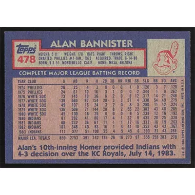 This is a 1984 Topps Alan Bannister baseball card. The card is #478 and pictures show condition.