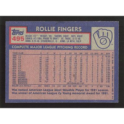 This is a 1984 Topps Rollie Fingers baseball card. The card is #495 and pictures show condition.