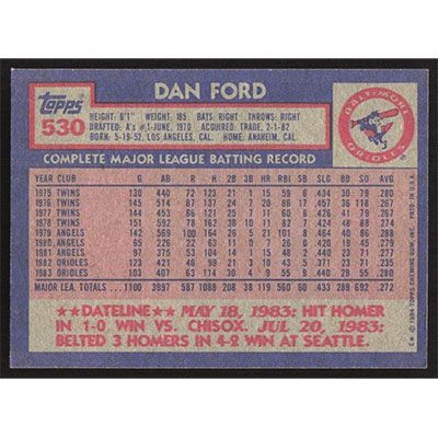 This is a 1984 Topps Dan Ford baseball card. The card is #530 and pictures show condition.