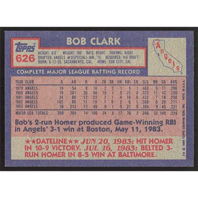 This is a 1984 Topps Bobby Clark baseball card. The card is #626 and pictures show condition.