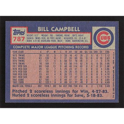 This is a 1984 Topps Bill Campbell baseball card. The card is #787 and pictures show condition.