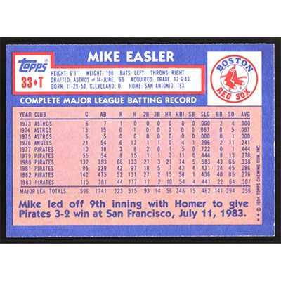This is a 1984 Topps Traded Mike Easler baseball card. The card is #33T and pictures show condition.