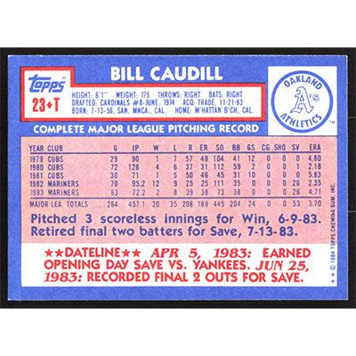 This is a 1984 Topps Traded Tiffany Bill Caudill baseball card. The card is #23T and pictures show condition.