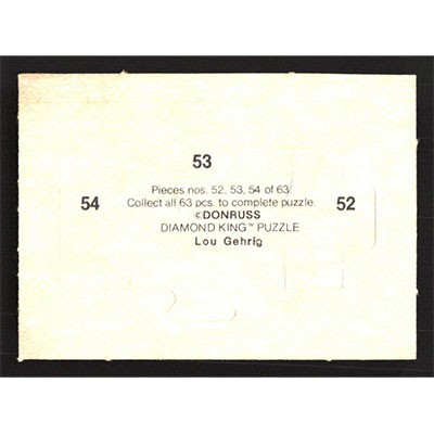 This is a 1985 Donruss Puzzle Lou Gehrig baseball card. The card is #52-54 and pictures show condition.