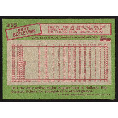 This is a 1985 Topps Bert Blyleven baseball card. The card is #355 and pictures show condition.