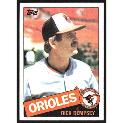 This is a 1985 Topps Rick Dempsey baseball card. The card is #521 and pictures show condition.