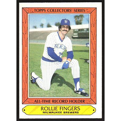 This is a 1985 Woolworth's Topps Rollie Fingers baseball card. The card is #10 and pictures show condition.