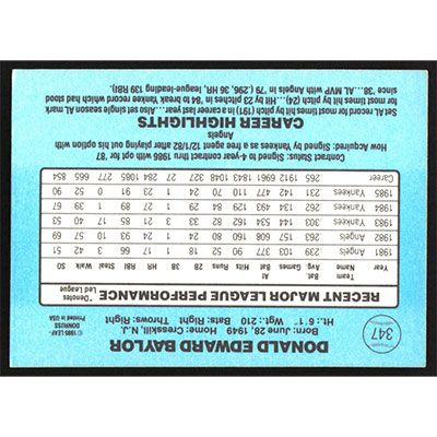 This is a 1986 Donruss Don Baylor baseball card. The card is #347 and pictures show condition.
