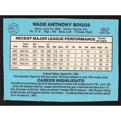 This is a 1986 Donruss All-Stars Cello Box Wade Boggs Hand Cut baseball card. The card is #PC7 and pictures show condition.