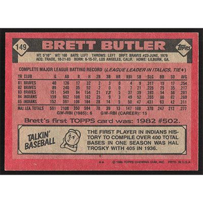 This is a 1986 Topps Brett Butler baseball card. The card is #149 and pictures show condition.