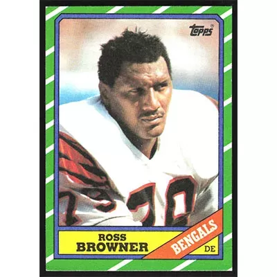 This is a 1986 Topps Ross Browner football card. The card is #263 and pictures show condition.