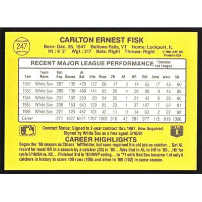 This is a 1987 Donruss Carlton Fisk baseball card. The card is #247 and pictures show condition.