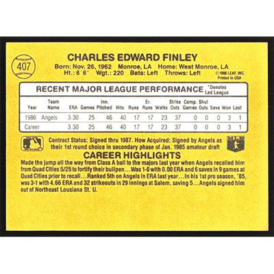 This is a 1987 Donruss Chuck Finley baseball card. The card is #407 and pictures show condition.