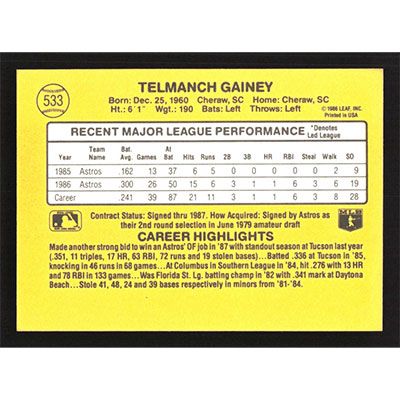 This is a 1987 Donruss Ty Gainey baseball card. The card is #533 and pictures show condition.