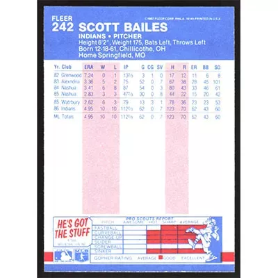 This is a 1987 Fleer Scott Bailes baseball card. The card is #242 and pictures show condition.