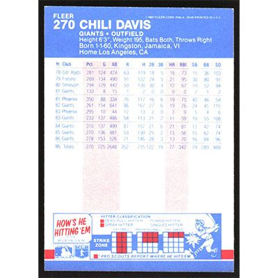 This is a 1987 Fleer Chili Davis baseball card. The card is #270 and pictures show condition.