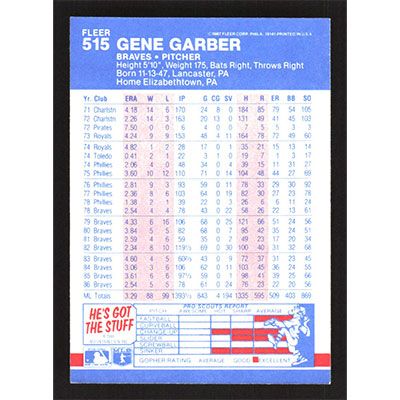 This is a 1987 Fleer Gene Garber baseball card. The card is #515 and pictures show condition.