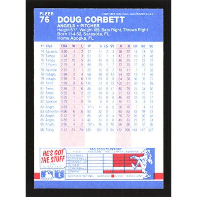 This is a 1987 Fleer Doug Corbett baseball card. The card is #76 and pictures show condition.