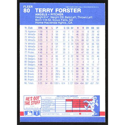 This is a 1987 Fleer Terry Forster baseball card. The card is #80 and pictures show condition.