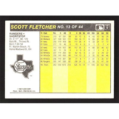 This is a 1987 Fleer Award Winners Scott Fletcher baseball card. The card is #13 and pictures show condition.
