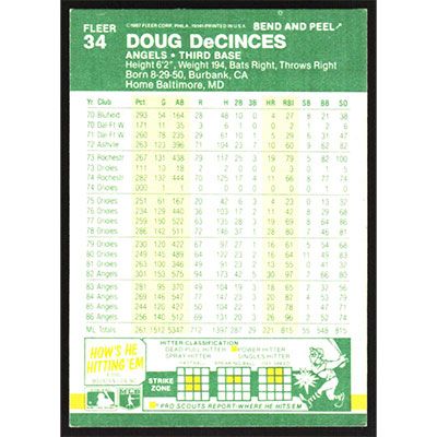 This is a 1987 Fleer Star Stickers Doug DeCinces baseball card. The card is #34 and pictures show condition.