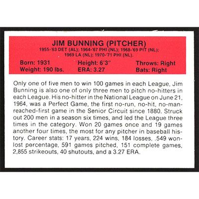 This is a 1987 Hygrade All-Time Greats Jim Bunning baseball card. The card is #NNO and pictures show condition.